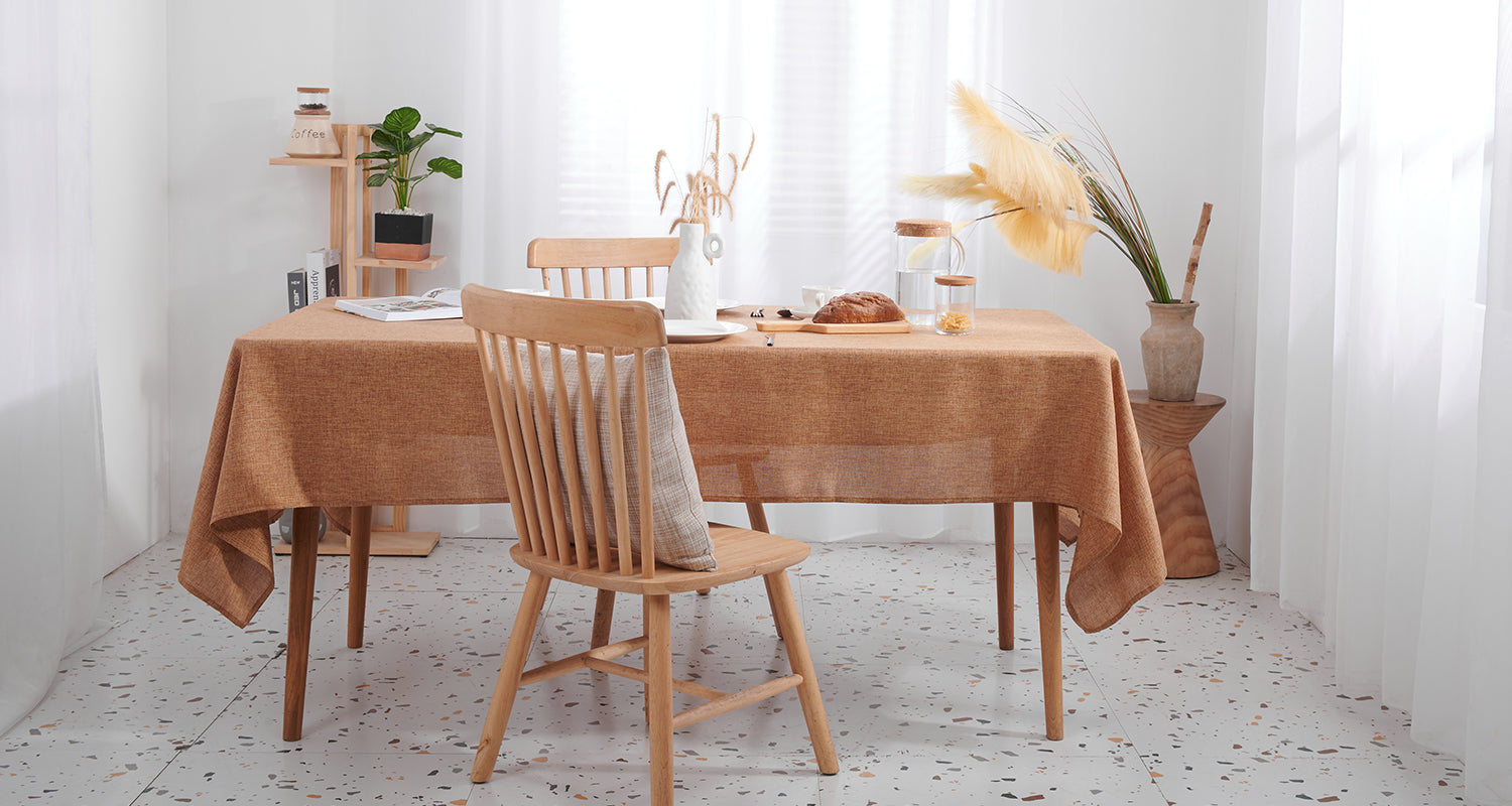 Get more use out of your tablecloths by choosing fabrics suited for indoor and outdoor use. Water-resistant recycled polyester prints or bright oilcloths work perfectly inside and out. Floral prints and checked patterns are fade and stain resistant.