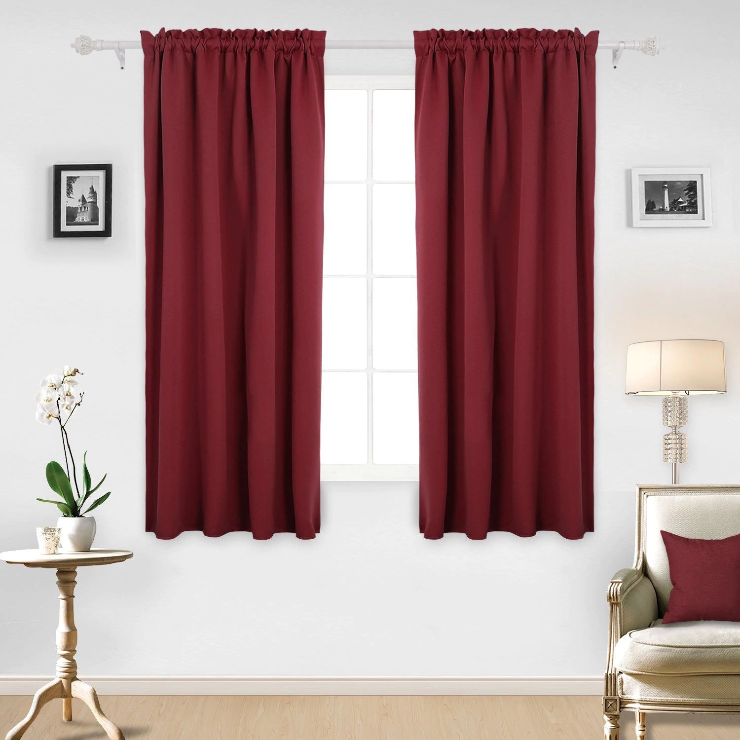 If you want to create a cozy bedroom, red curtains make a room feel warm and romantic. These red blackout curtains can be used alone, with sheers or with a valance. The rod-pocket style gives extra fullness at the windows, and the silky material creates an opulent look.