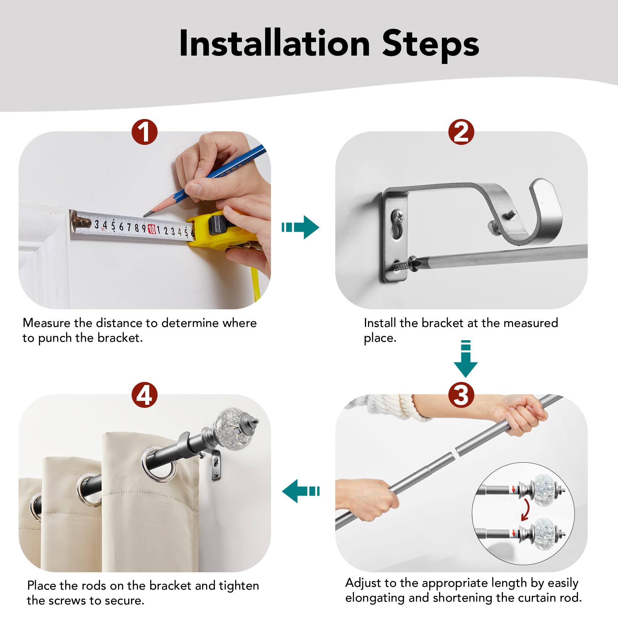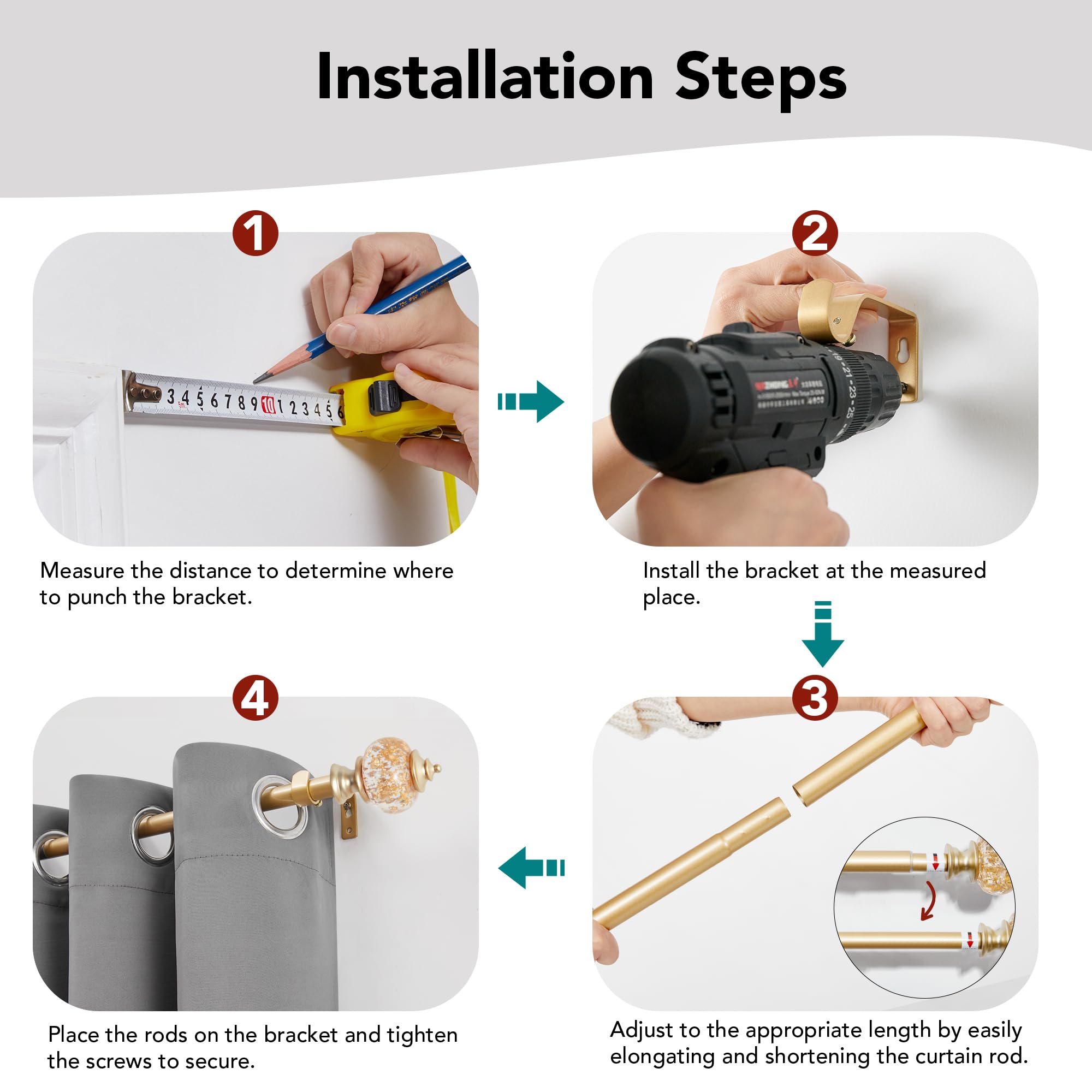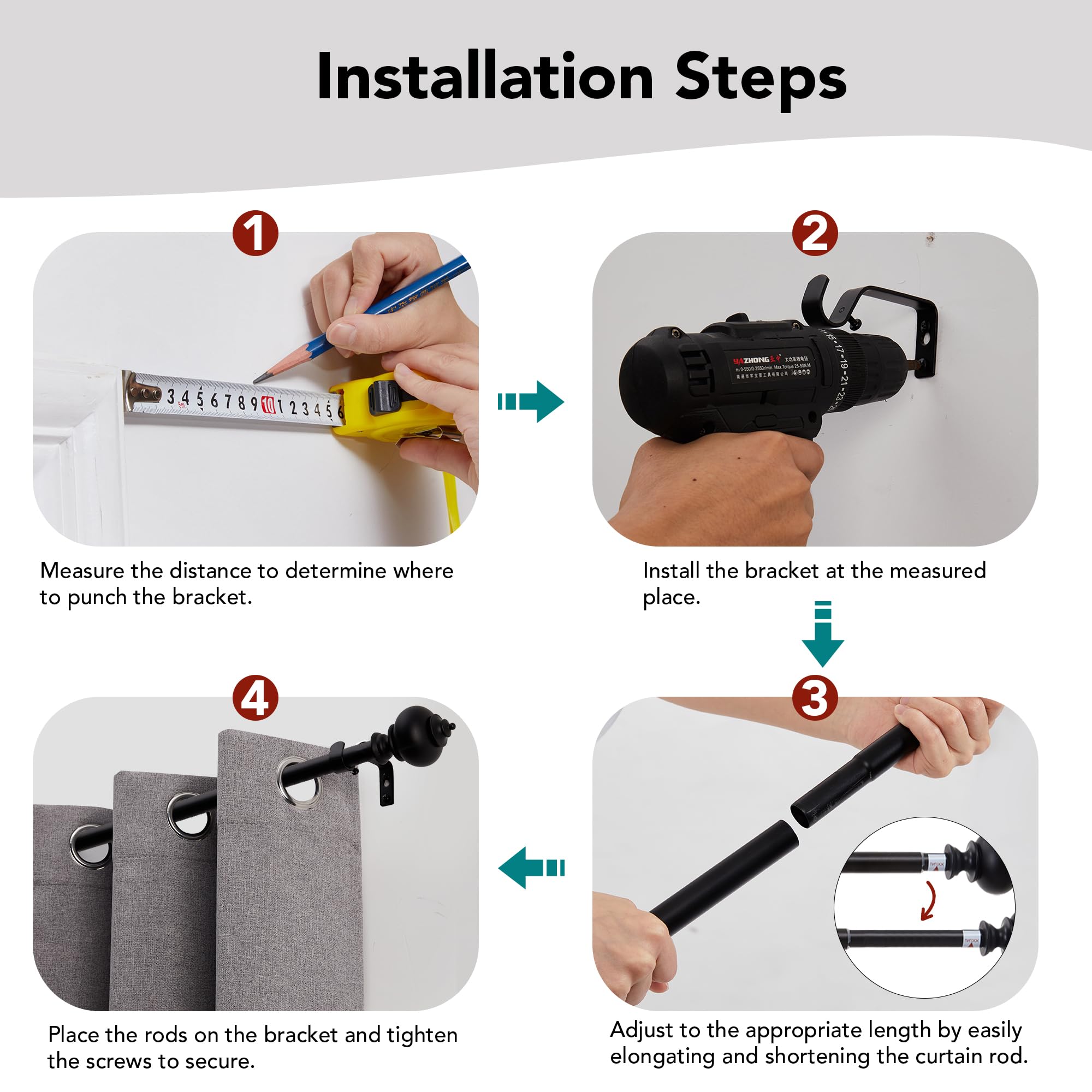 Package Information - The DECONOVO curtain pole package comes with an easy-to-follow installation manual, a high-quality stainless steel single curtain rod, mounting brackets, elegant finials, and all the necessary hardware. You won't need to purchase any additional parts, and the installation process is straightforward. The packaging is sturdy, ensuring a smooth and sustainable experience.