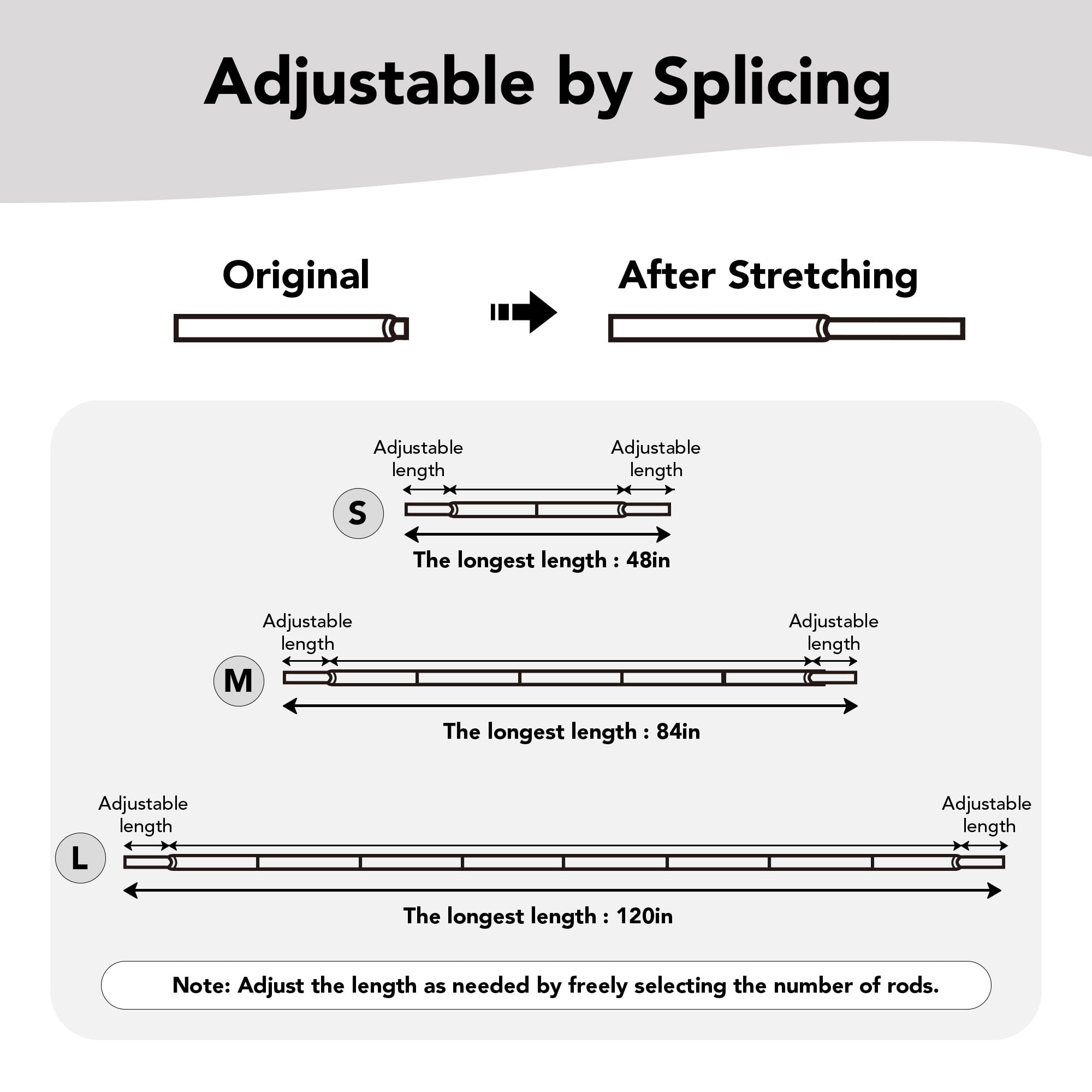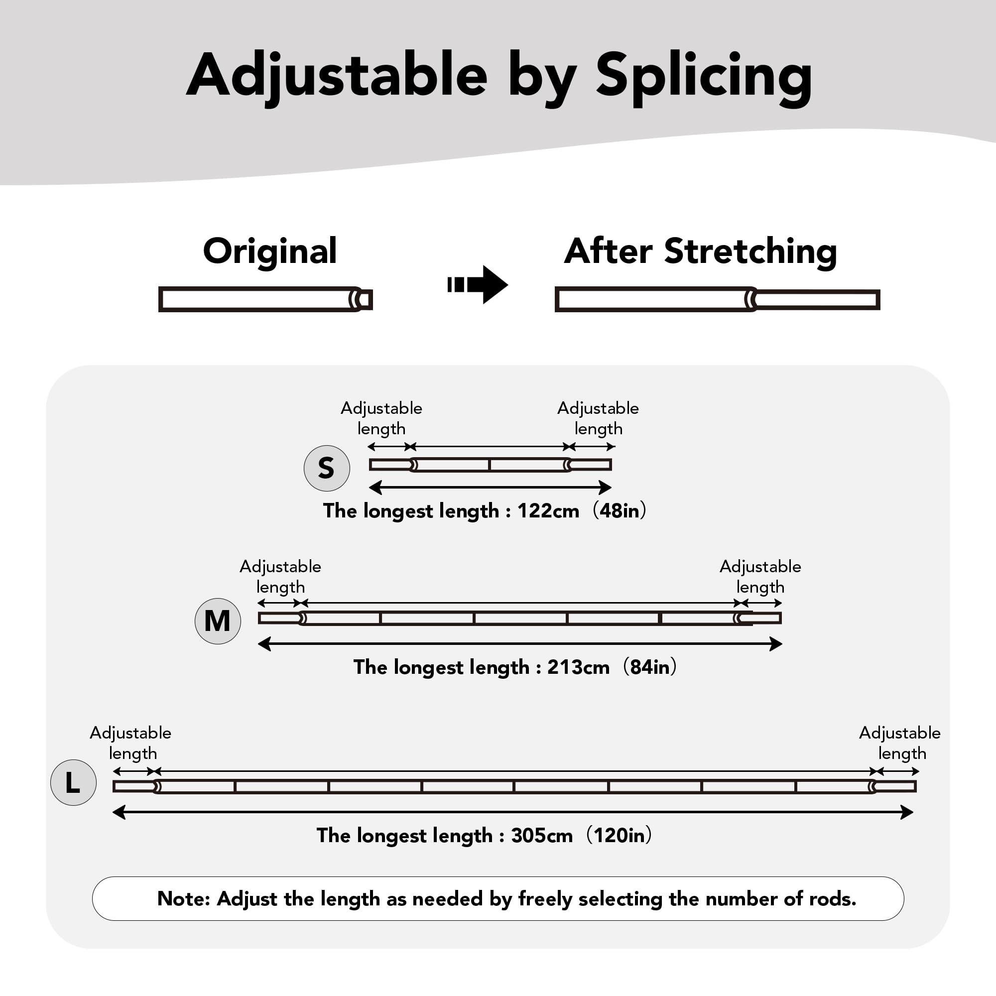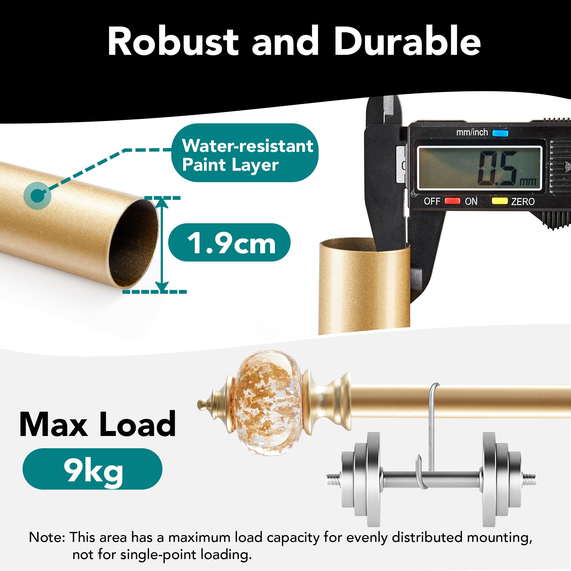 Strong and Sturdy - This curtain rod is crafted from premium metal, boasting both lightness and durability, ensuring stability and longevity. Featuring a sturdy mounting bracket and a 3/4-inch diameter rod, it can support up to 11KG. Distinct from traditional single-rod designs, spliced construction and extendable ends allow it to adapt to varying space sizes while maintaining structural integrity, thus ensuring a perfect curtain hanging effect.